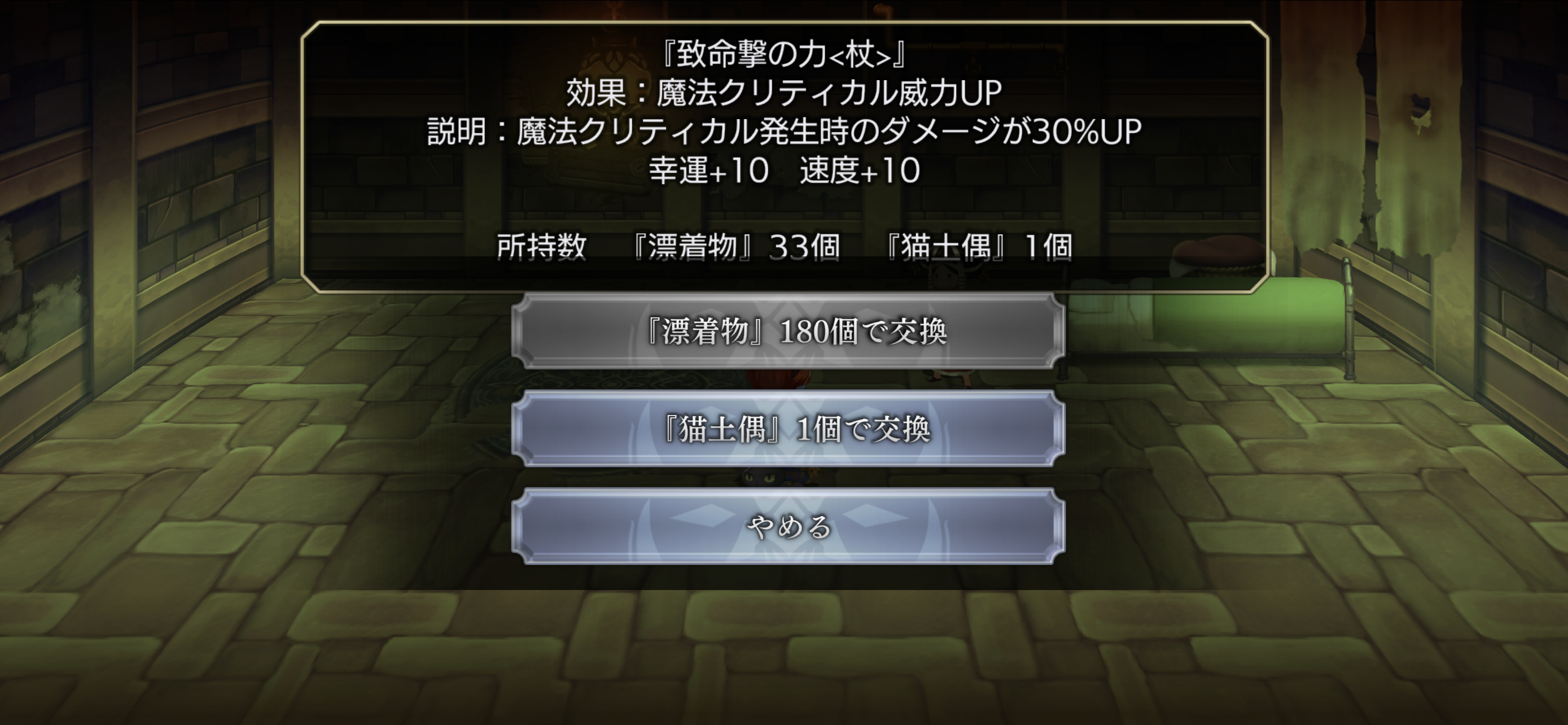 瓦落多交換と猫絵馬交換は終わっていないけど、ひとまず現代ガルレアに区切りを付けてグリーンキー周回を冥峡界へ変更。リィカの天がかなり上がったお陰でわら坊育成も兼ねられます。